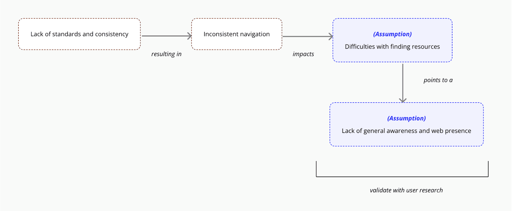 Library staff shared their assumption that users struggled to find key resources due to inconsistent navigation, unclear terminology, and cluttered layout issues. Through user research, we aimed to validate these assumptions and uncover additional factors that may impact the discoverability of library’s resources and services.